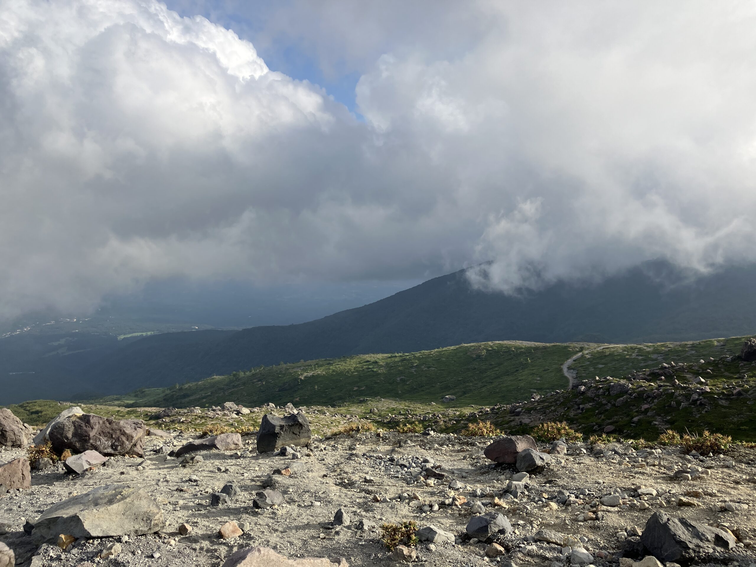 ロープウェイ4分で山麓駅に到着、峠の茶屋駐車場まで